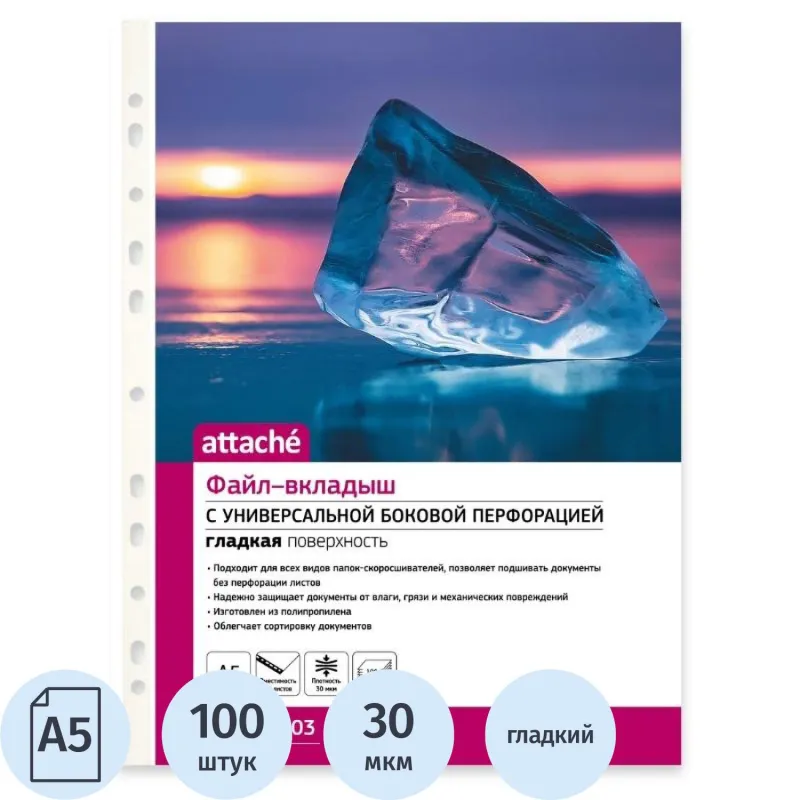 Файл-вкладыш А4 Attache, Стандарт, 30мкм с перф,100 шт., рифлен.пов
