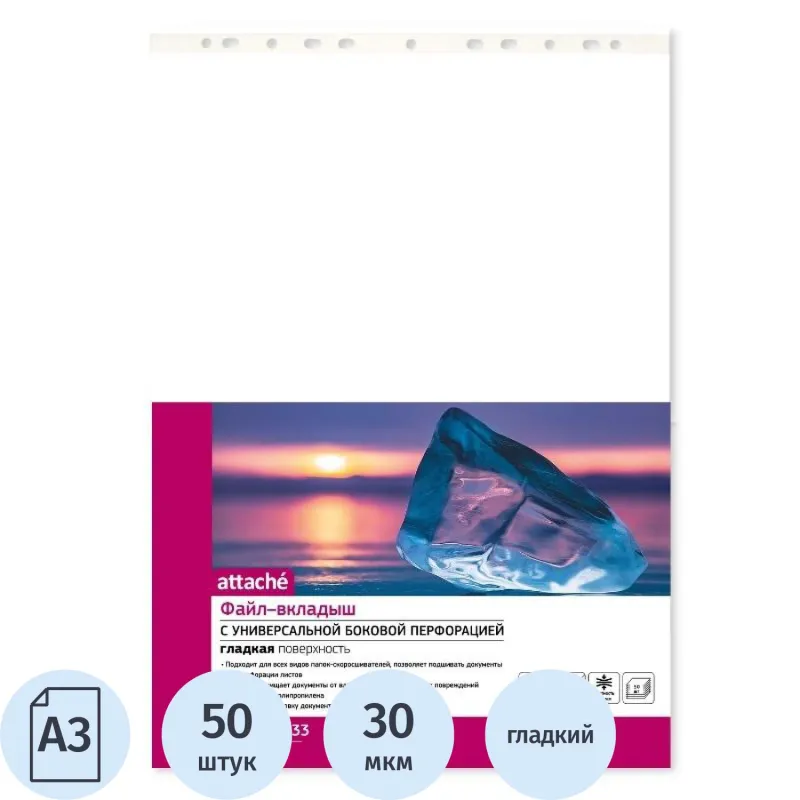 Файл-вкладыш А3 30мкм ATTACHE вертикальный, 50 шт