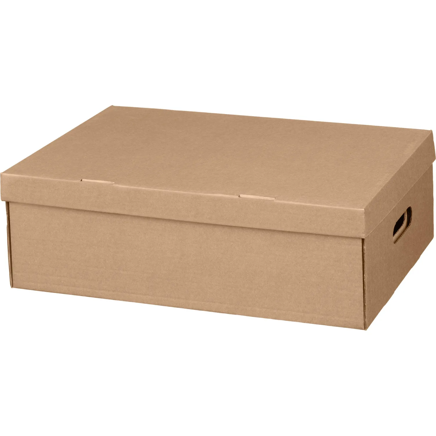 Сэкономить можно на дизайне и модном импортном бренда, причем – без потери качества. Так, например, российские производители изготавливают контейнеры из прочного гофрированного неосветленного картона в различных вариантах – с вырубными замками, с крышками сверху и сбоку, с завязками и др. Такие коробки для хранения недорого стоят и ничем не уступают импортным аналогам австрийского, немецкого и польского производства.