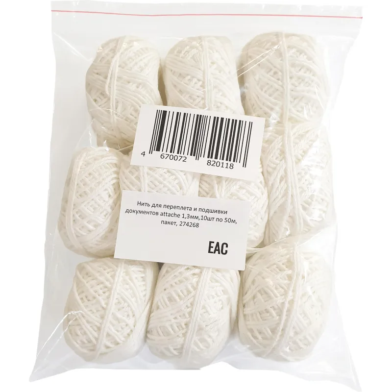 Нить для переплета и подшивки документов Attache 1,3мм,10шт по 50м, пакет