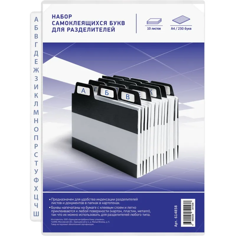 Набор букв для разделителей,самоклещ., 230 шт.,10лист