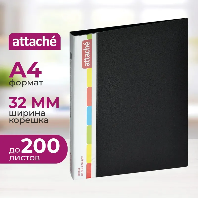 Папка на 4-х кольцах пласт. 17/32мм А4 ATTACHE F504/045 черная
