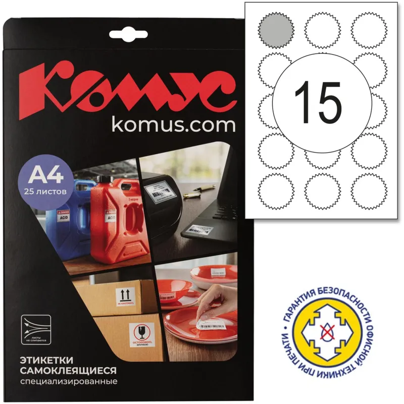 Этикетки самоклеящиеся белые звездочки д/опечат. 15шт/А4/25л