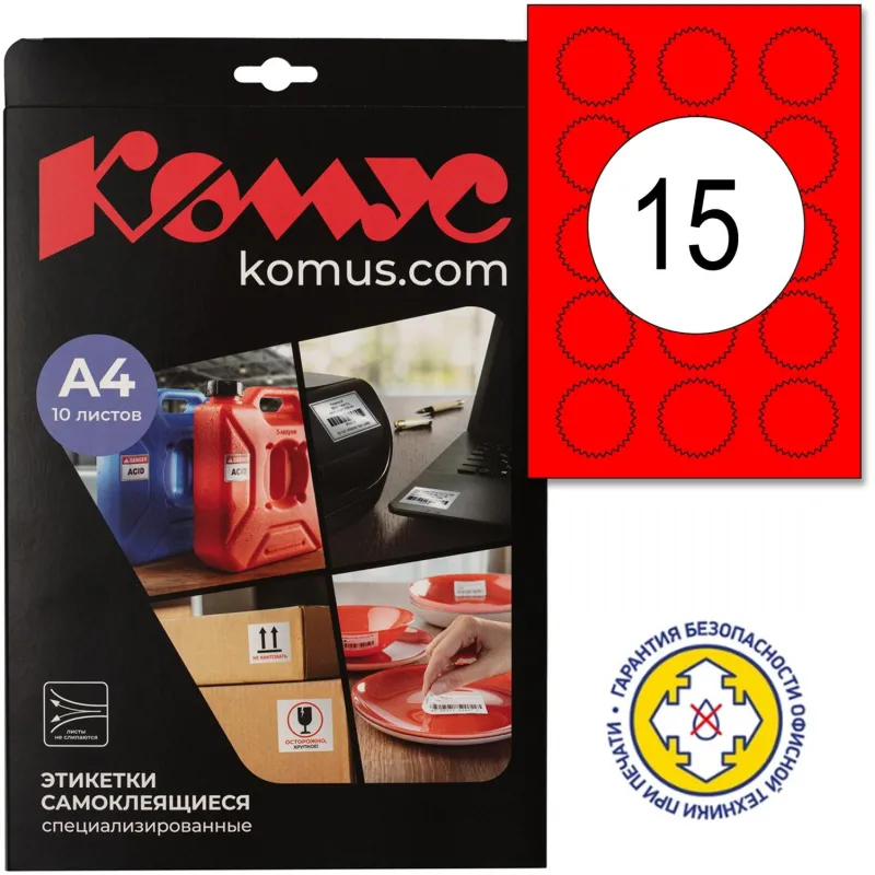 Этикетка для опечатывания документов ЗВЕЗДОЧКА, 55 мм, 500 шт/рул, цвет крс