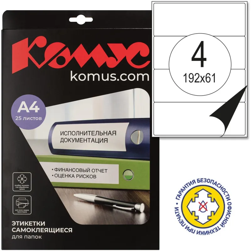 Этикетки самоклеящиеся для пап-рег,192х61мм 4шт.на л.А4,25л