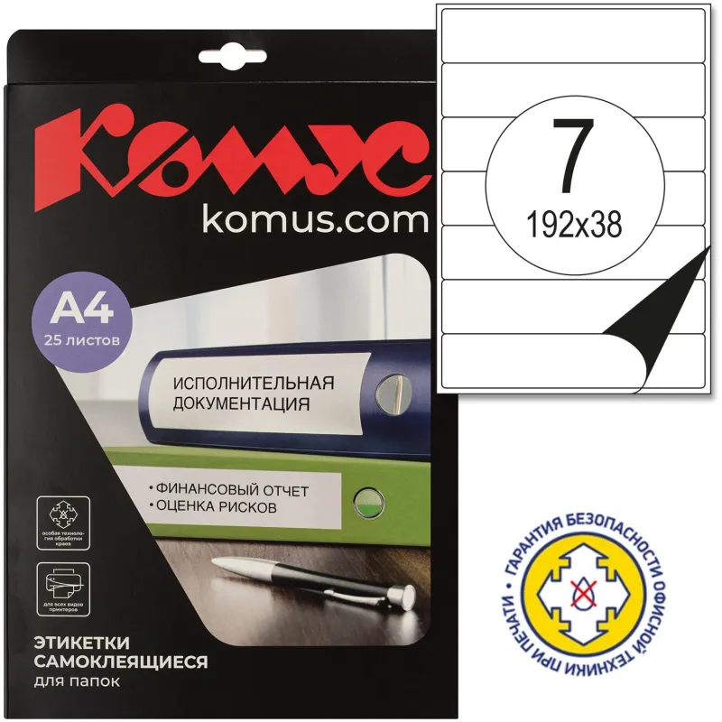 Этикетки самоклеящиеся для папок-рег,192х38мм 7шт.на л.A4 25л