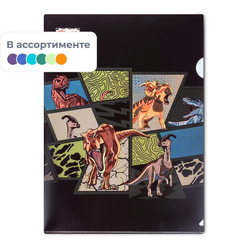 Папка уголок А4 Комус Класс Дино Комикс 200 мкм, 2 шт/уп