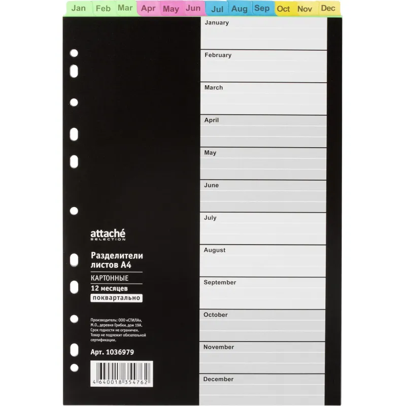 Разделитель листов с индексами Jan-Dec Attache Selection, А4, картон