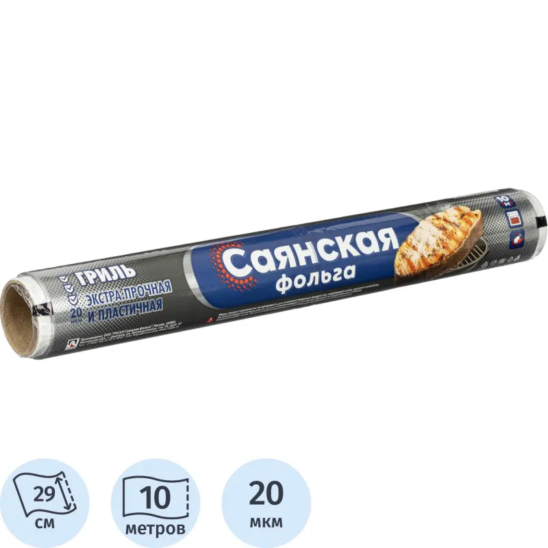 Фольга пищевая алюм 29смх100м 9мкм Саянская Professional С100П-290х12