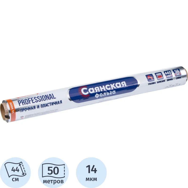 Фольга пищевая алюминиевая 44смх 50м 14мкмСаянская ProfessionalО50П-440х8