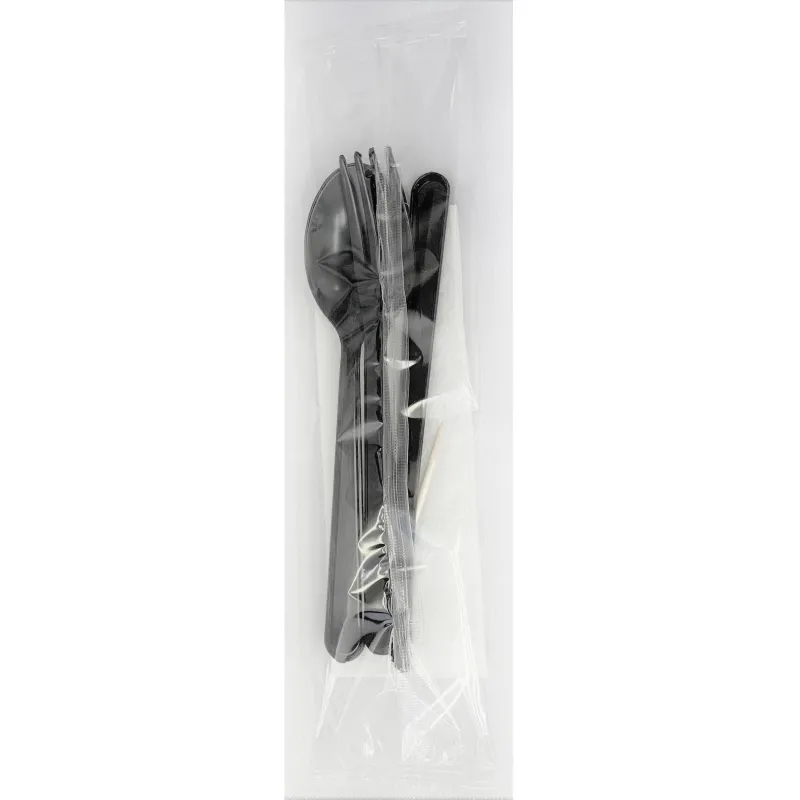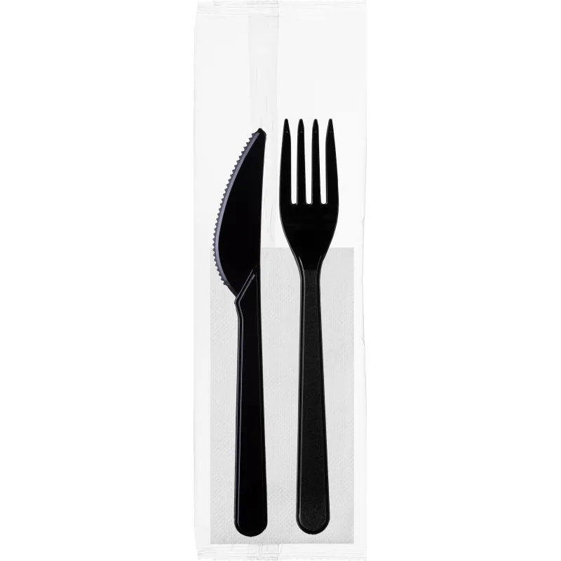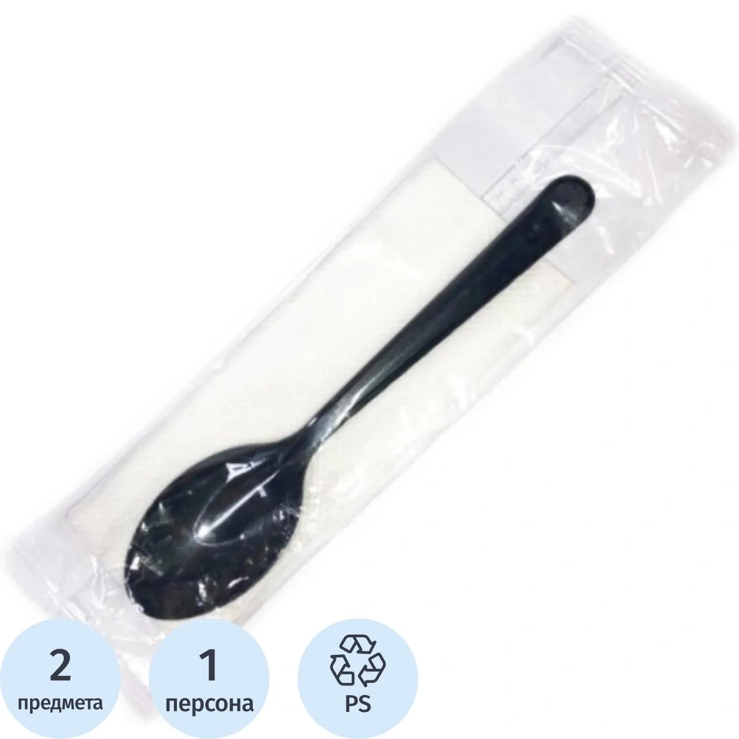Набор одноразовой посуды 2/1 Премиум черн.Ложка ст.,салфетка бел.400наб/уп