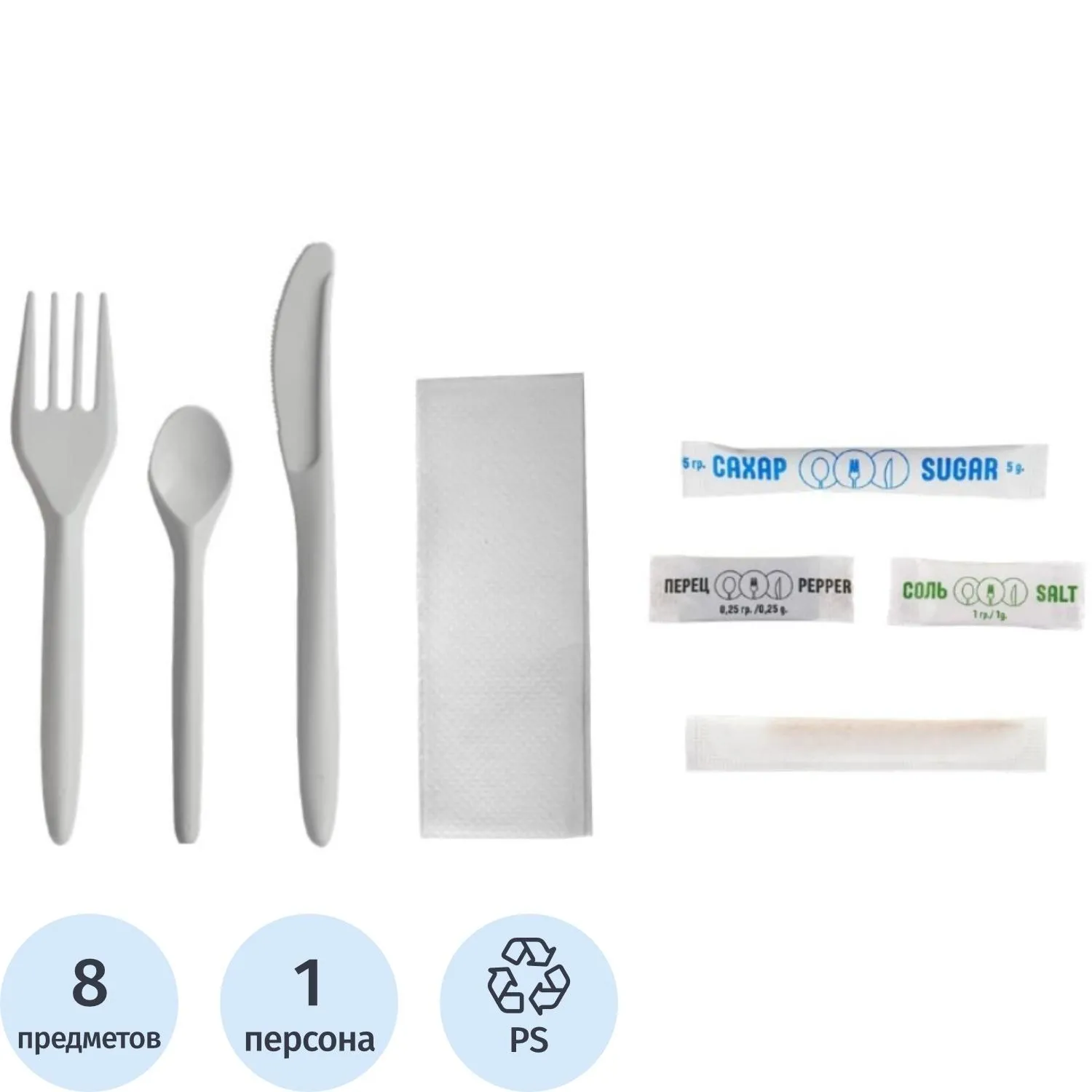 Набор одноразовой посуды, №4 (вилка, ложка ст., нож, салфетка) 200шт/уп