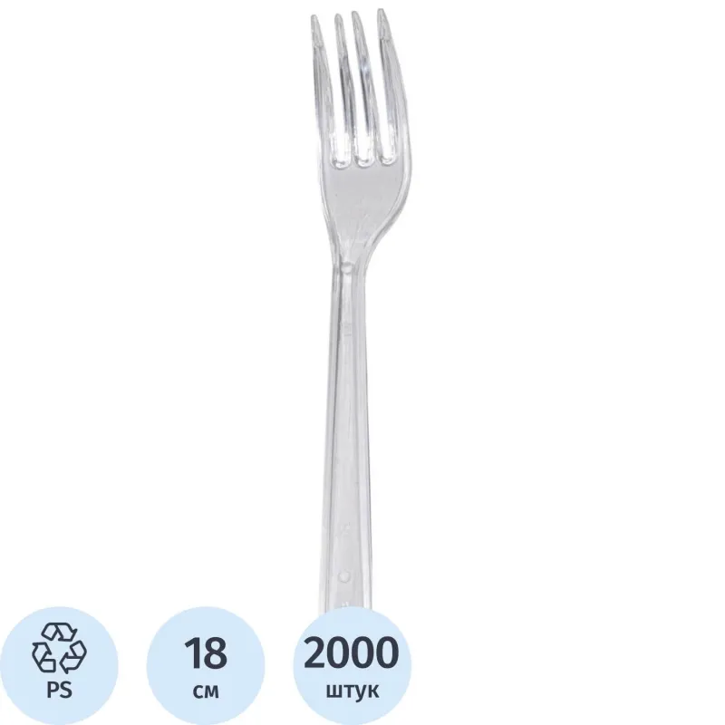 Вилка одноразовая прозрачная, 18 см, ПС 2000шт./кор