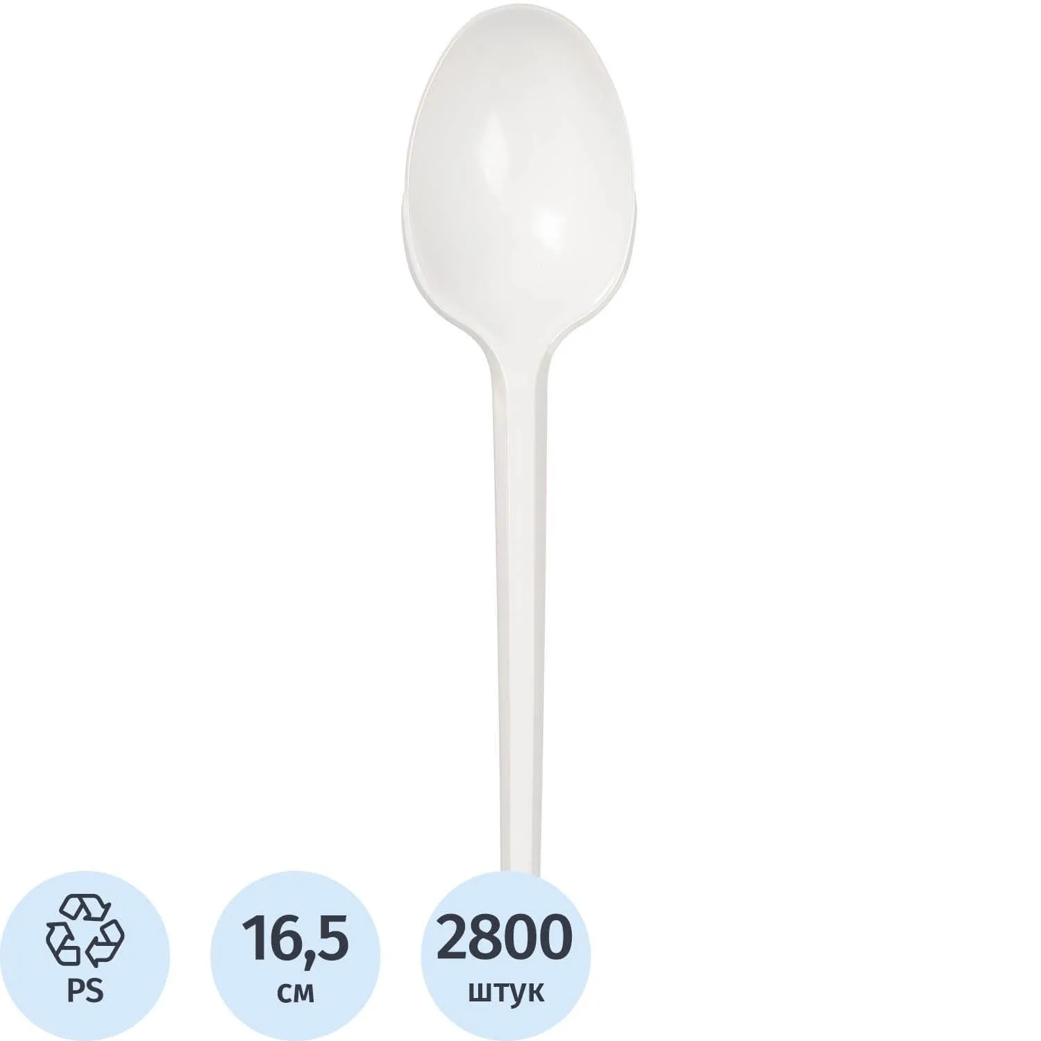 Ложка одноразовая столовая 165мм, ПС, белая, 2800шт/кор