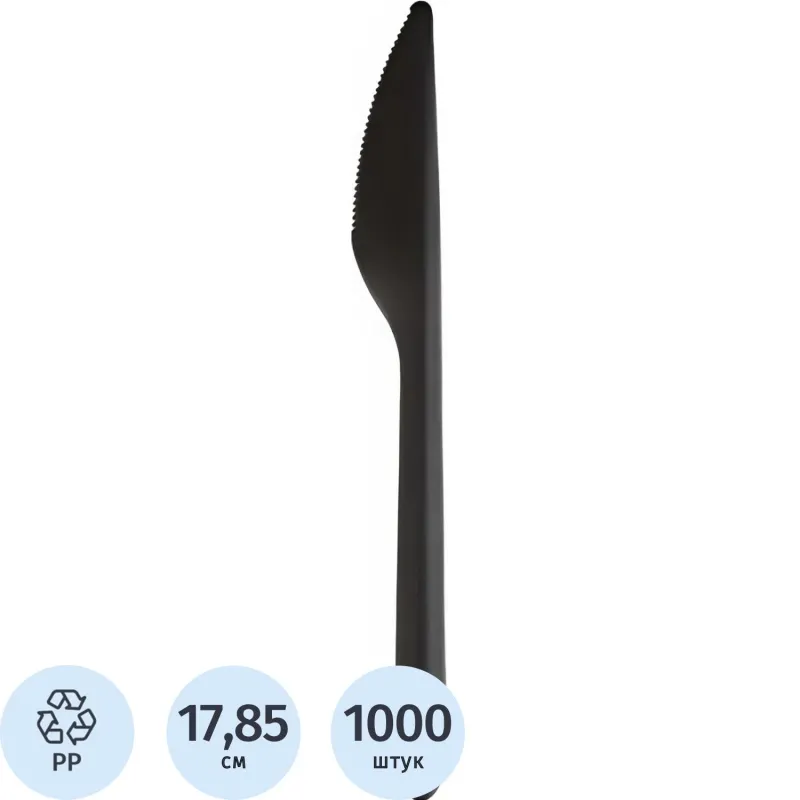 Нож одноразовый столовый 178,5 мм, черный. ПП, 1000 шт/кор