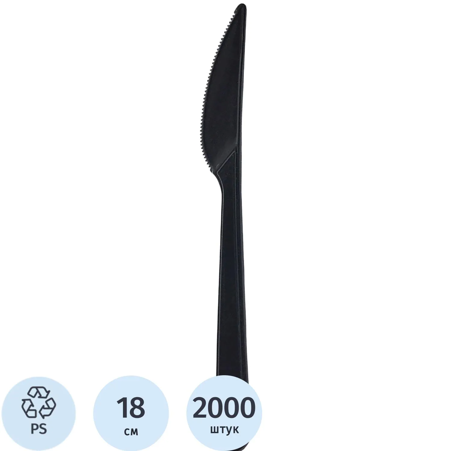 Нож одноразовый столовый 180мм, черный, ПС 2000 шт/кор
