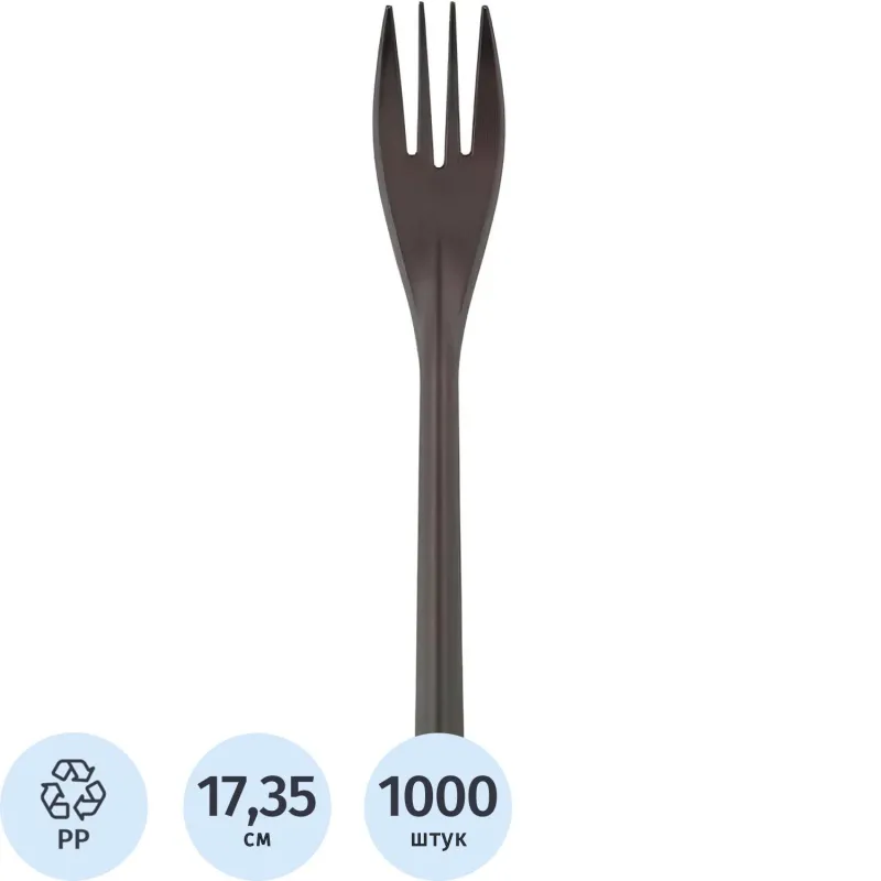 Вилка одноразовая столовая 173,5мм, черная, ПП, 1000 шт/кор