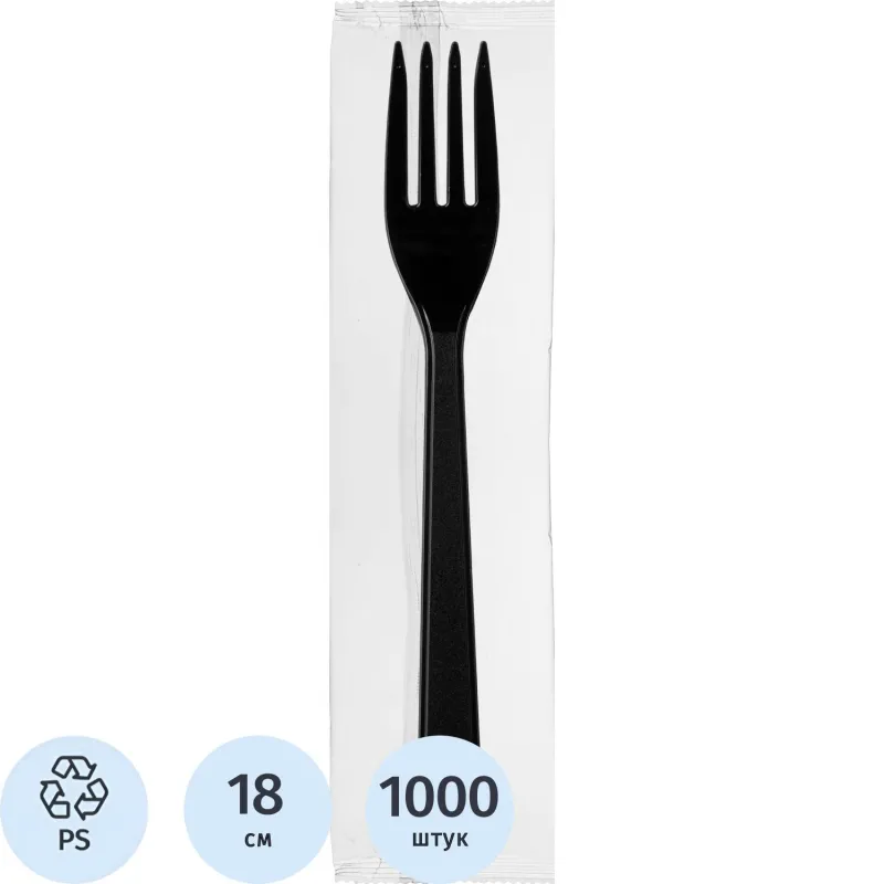 Вилка одноразовая столовая 180мм, черная, ПС 2000 шт/кор