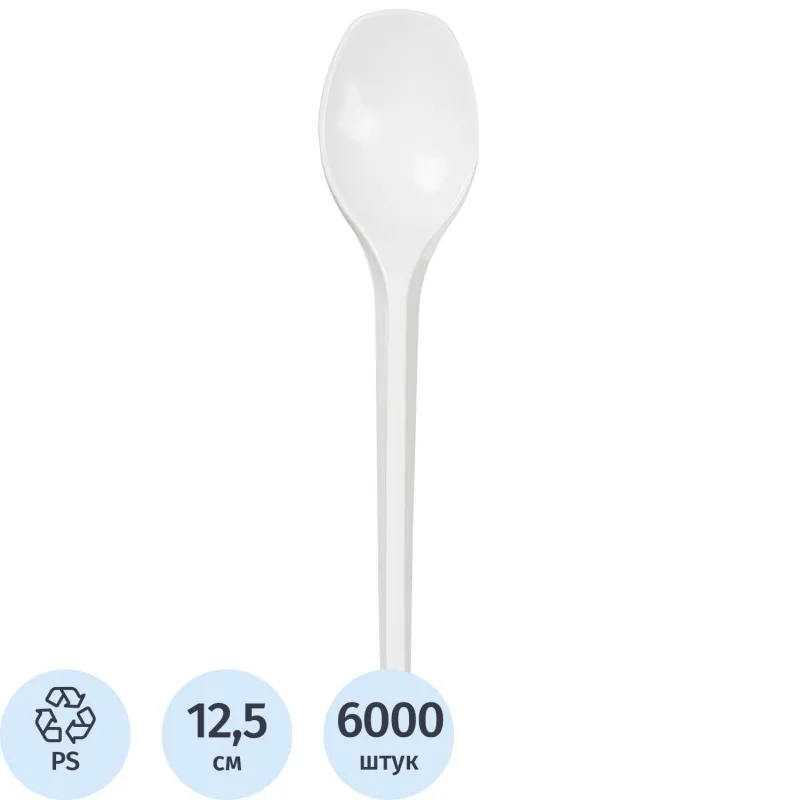 Ложка одноразовая чайная 125мм, белая, ПС 6000 шт/кор