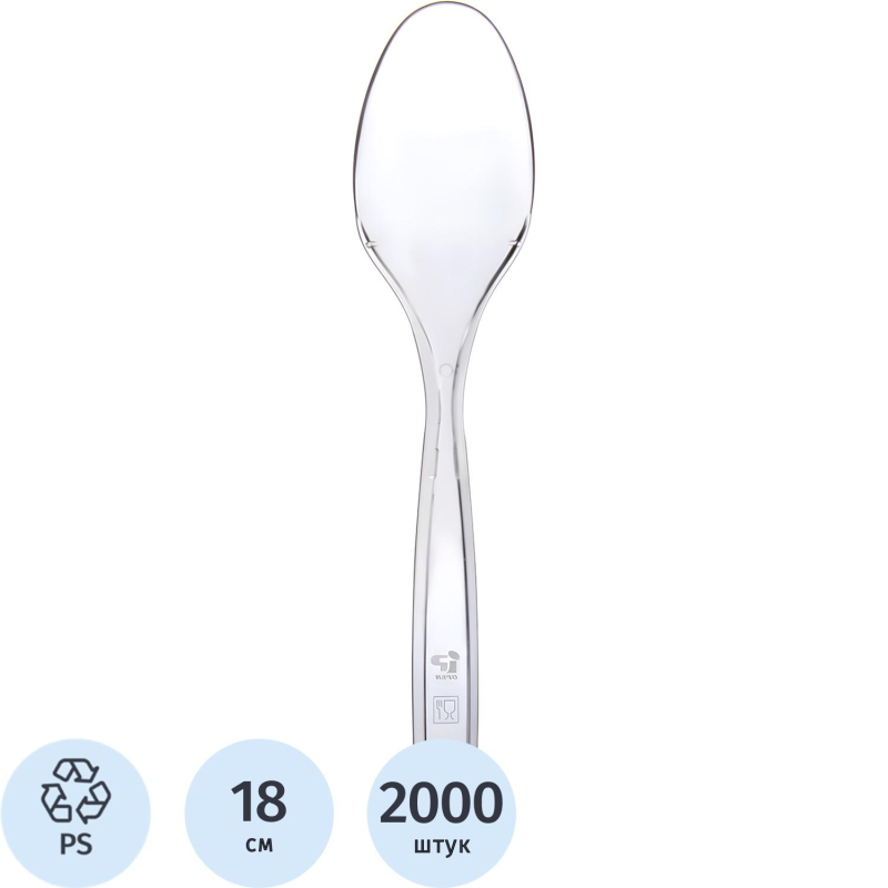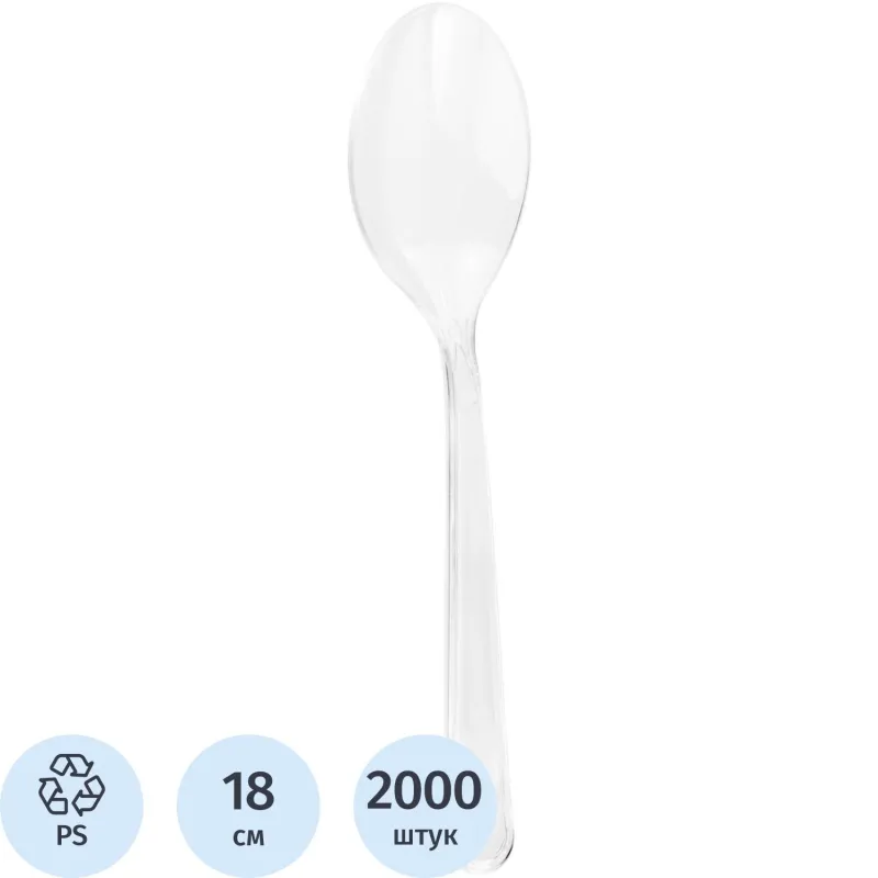 Ложка одноразовая столовая 180мм прозрачная, ПС, 2000шт/кор
