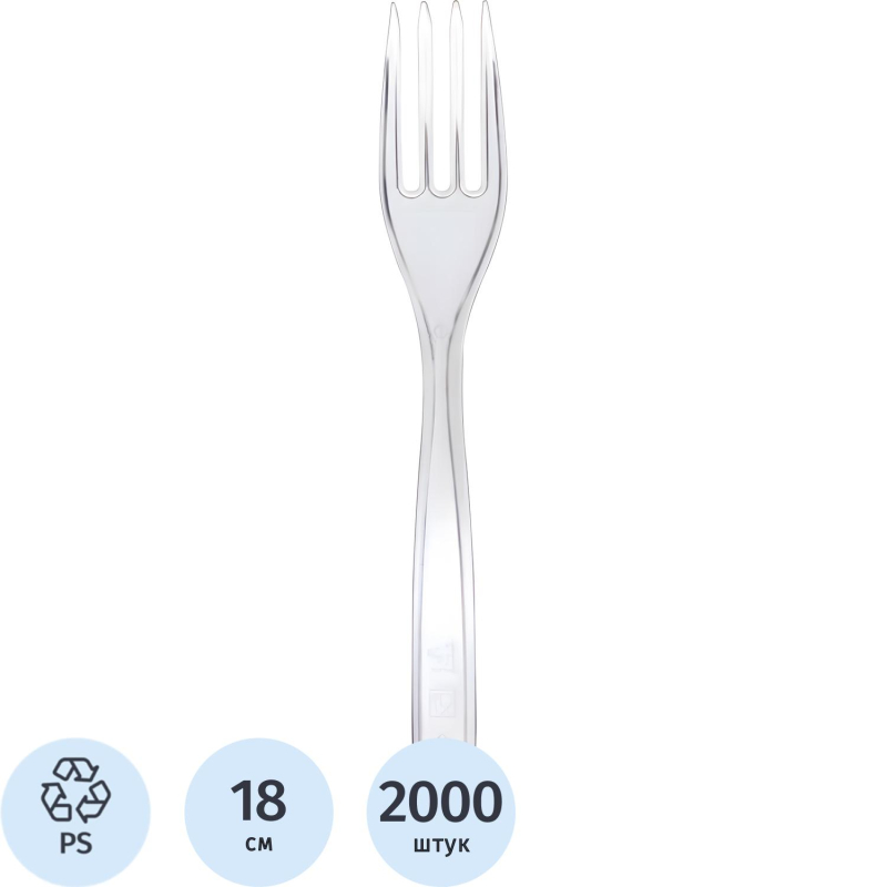 Вилка одноразовая 180мм прозрачная, ПС, 2000 шт/кор