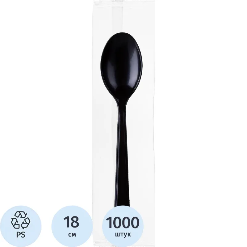 Ложка одноразовая столовая 165мм, ПС, черная, 2800шт/кор