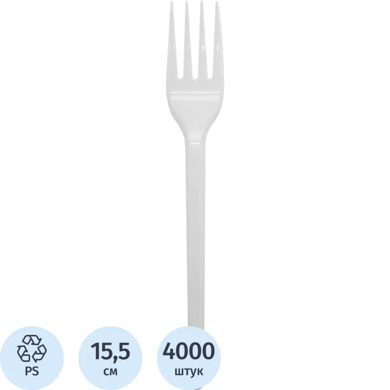 Вилка одноразовая белая 15,5см, ПС, 4000шт/кор