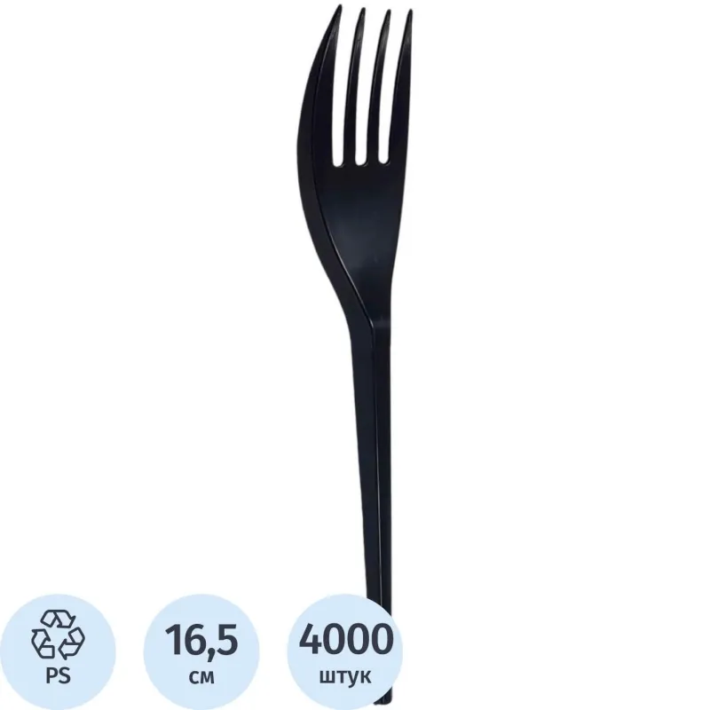 Вилка одноразовая столовая 165мм, ПС, черная, 4000шт/кор