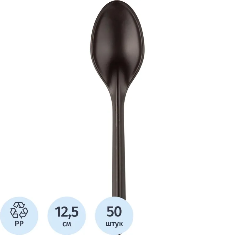 Ложка одноразовая чайная 125 мм, черная ПП, 50шт/уп(4034)