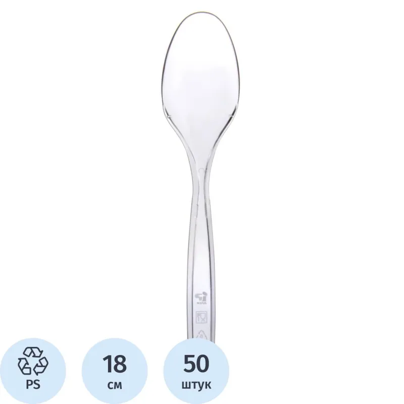 Ложка одноразовая столовая 175мм прозрачная ПС 50шт/уп