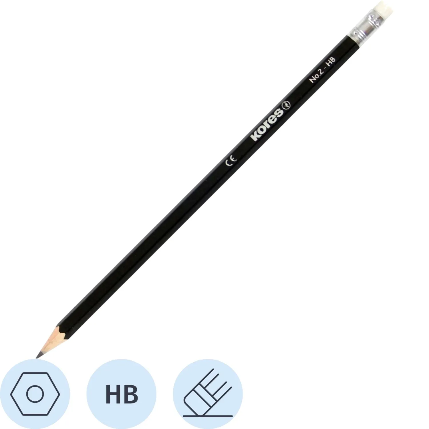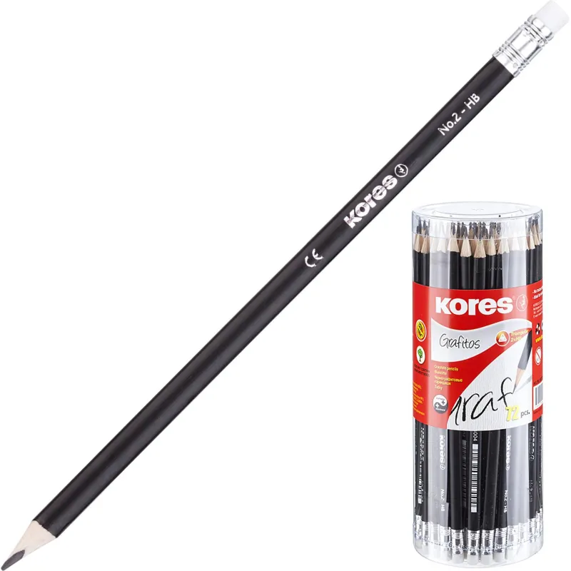 Карандаш чернографитный Kores шестигранный HB с ластиком 12шт/уп