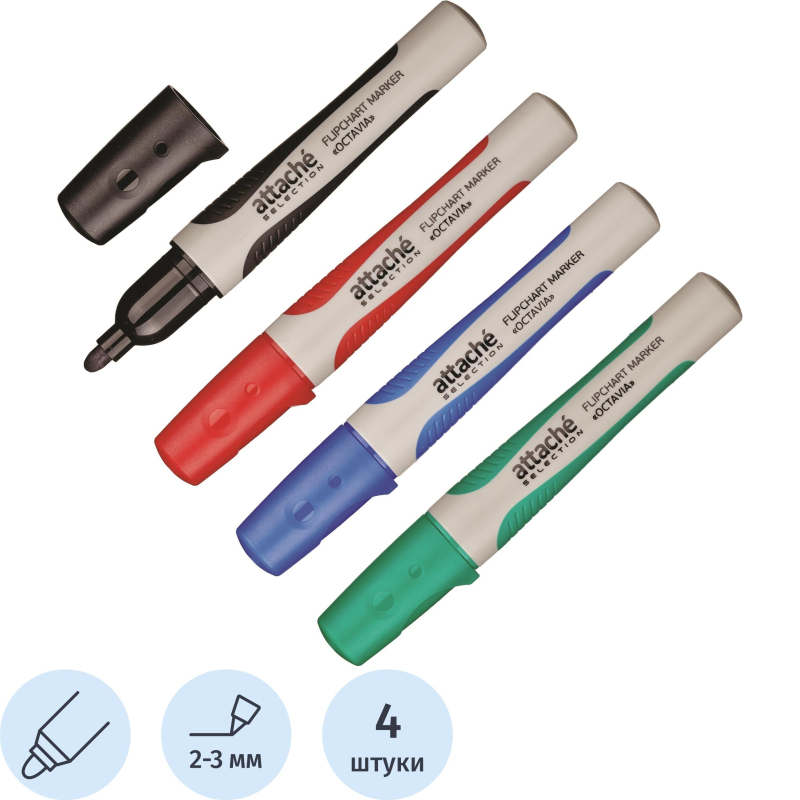 Набор маркеров для флипчартов по бумаге Attache Selection набор 4 цв 2-3 мм