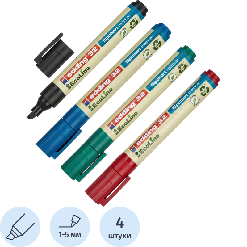 Набор маркеров для флипчартов EDDING 32 Ecoline, 1-5 мм, 4 цвета. карт кор