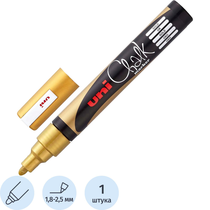 Маркер меловой UNI PWE-5M, золото, 1.8-2.5 мм.