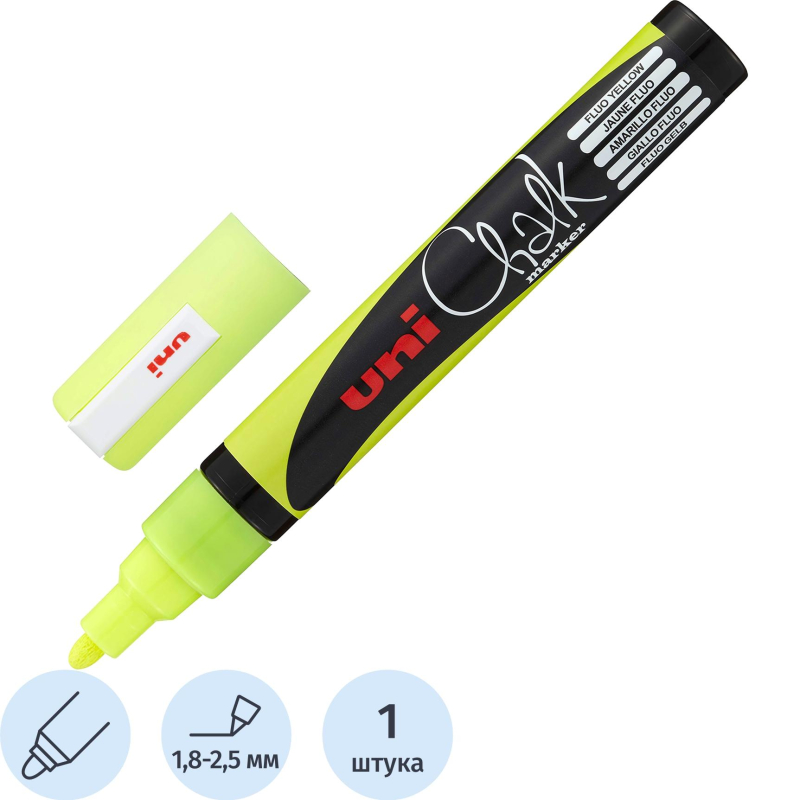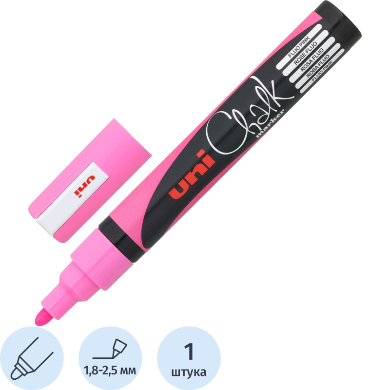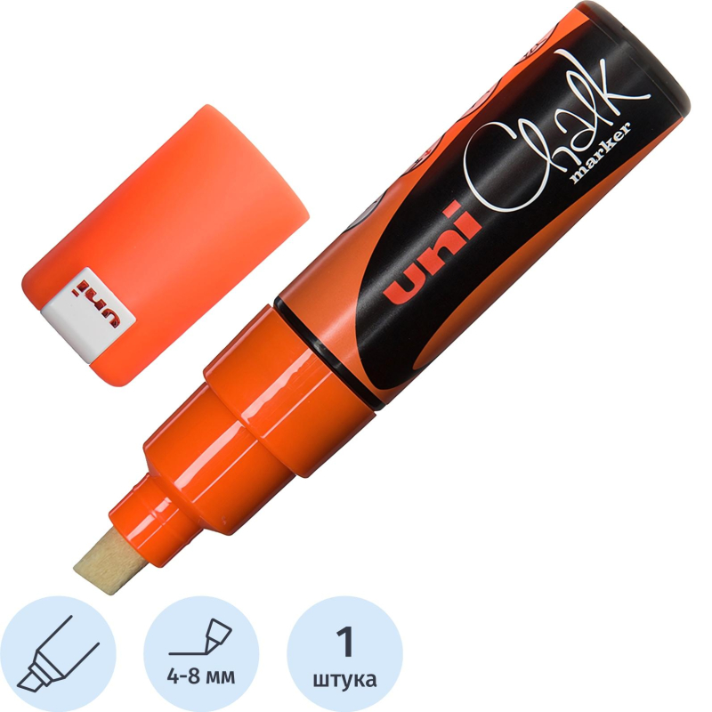 Маркер меловой UNI PWE-8K, флуоресцентно-оранжевый, до 8.0 мм.