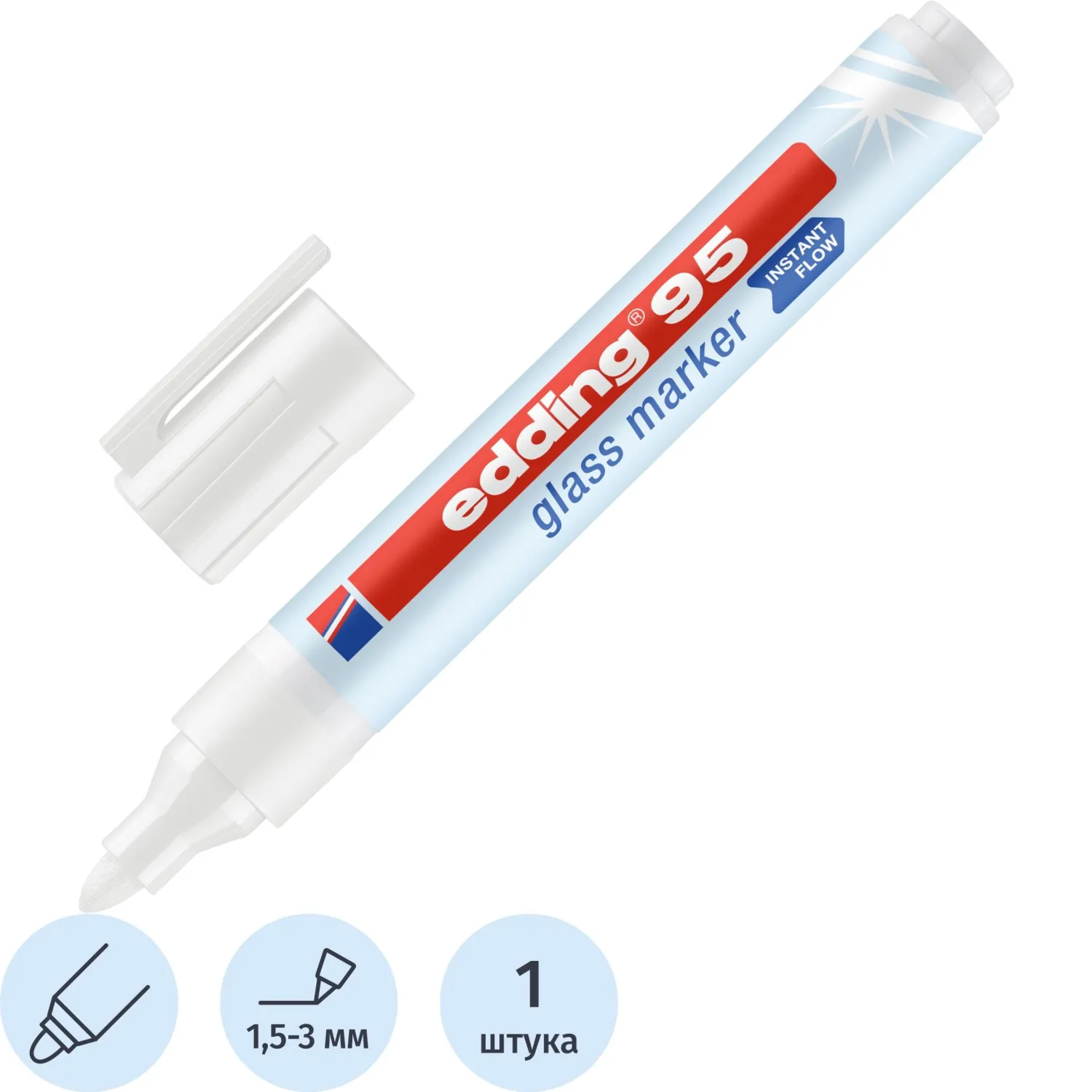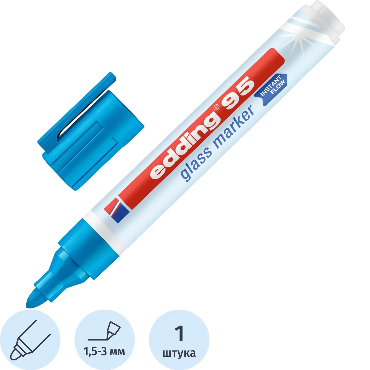 Маркер для стеклянных досок EDDING E-95/010 голубой 1,5-3мм круг.наконечник