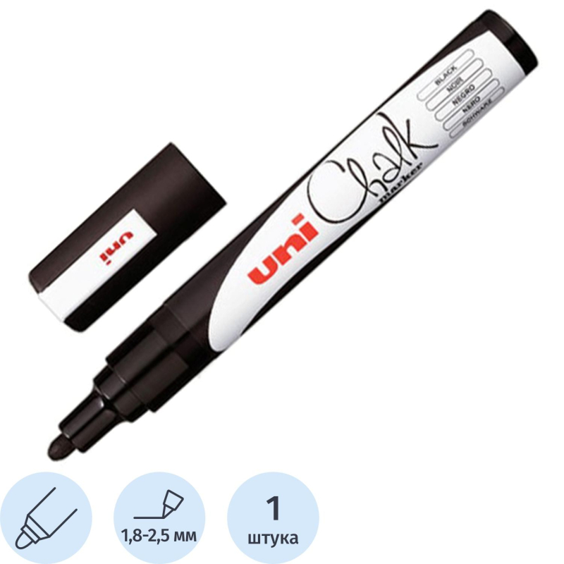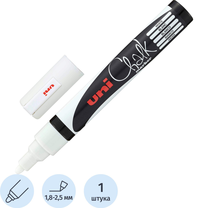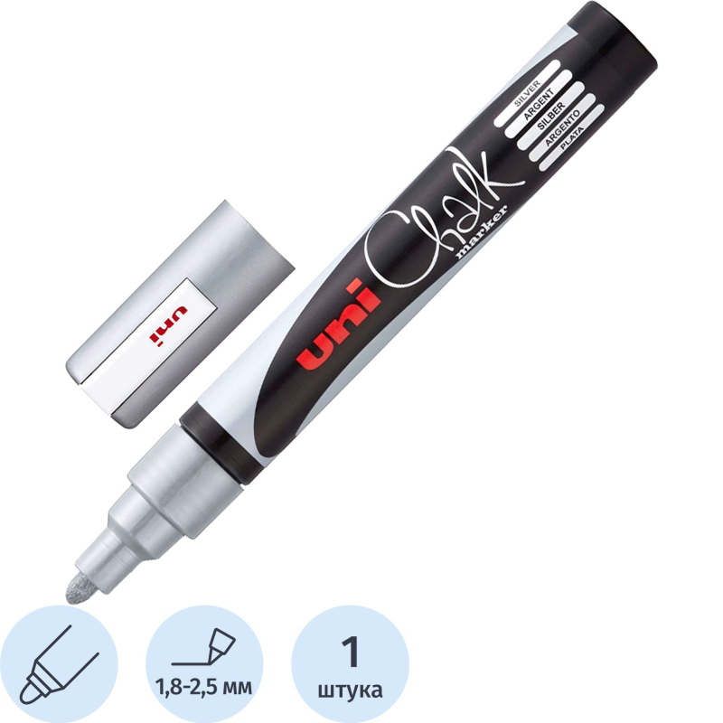 Маркер меловой UNI PWE-5M, серебро, 1.8-2.5 мм.