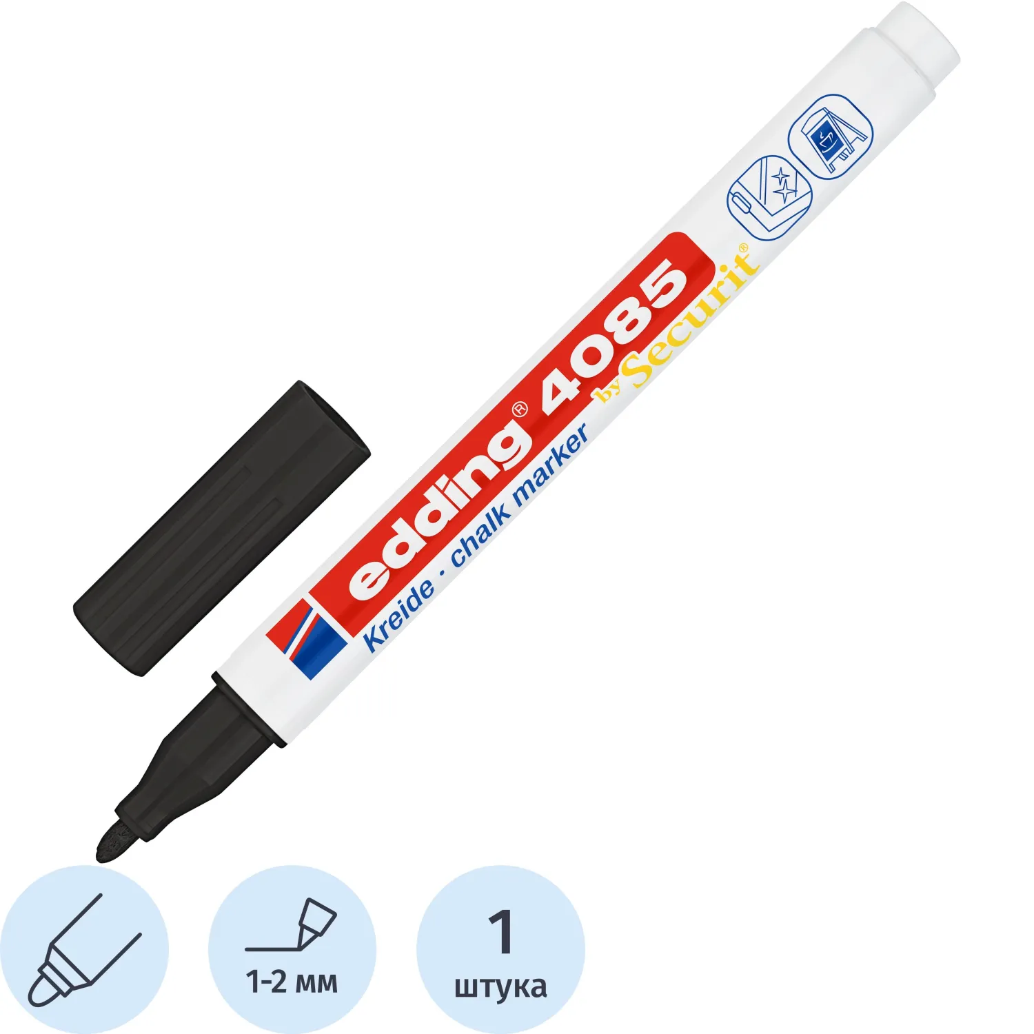 Маркер меловой edding 4085/001. 1-2 мм. Черный