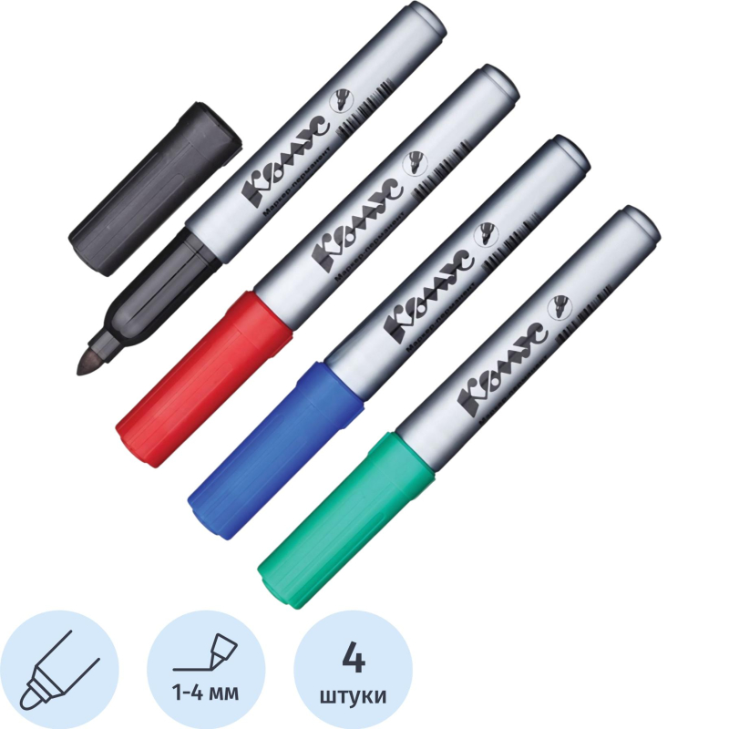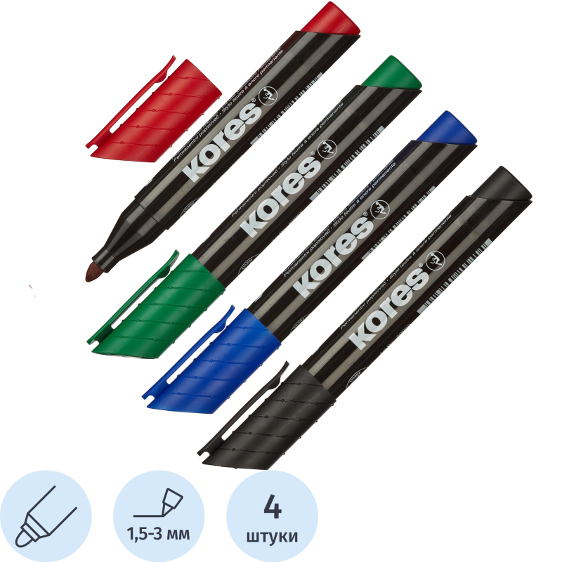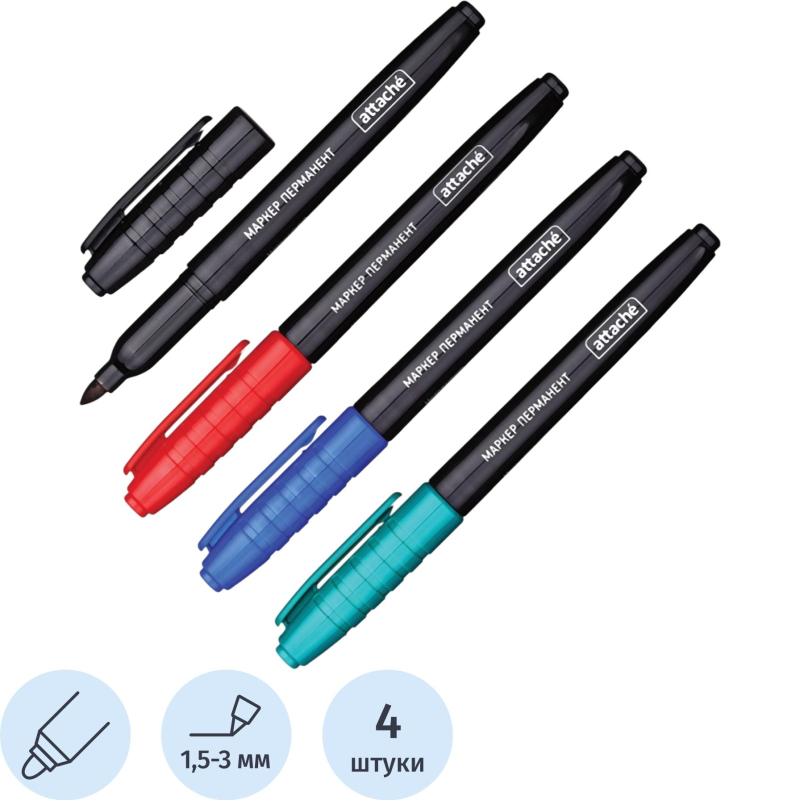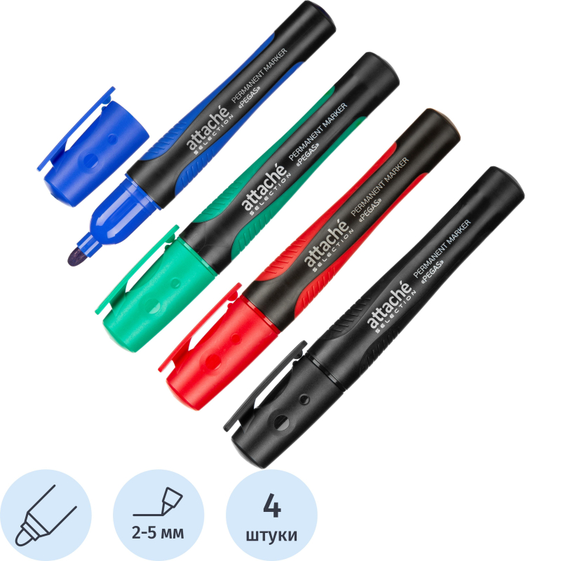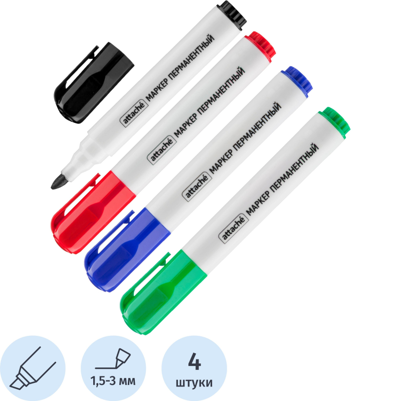 Толщина линии таких маркеров представляет собой амплитуду от 0,6 до 3 мм. Каждый из них выпускается в прочном пластиковом корпусе с круглым наконечником и заправляется водостойкими чернилами классических ходовых оттенков – черный, красный, зеленый, синий. Наиболее популярны черные перманентные маркеры.
