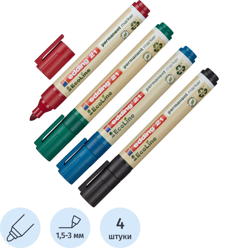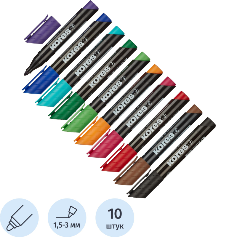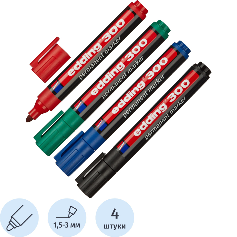 Толщина линии таких маркеров представляет собой амплитуду от 0,6 до 3 мм. Каждый из них выпускается в прочном пластиковом корпусе с круглым наконечником и заправляется водостойкими чернилами классических ходовых оттенков – черный, красный, зеленый, синий. Наиболее популярны черные перманентные маркеры.