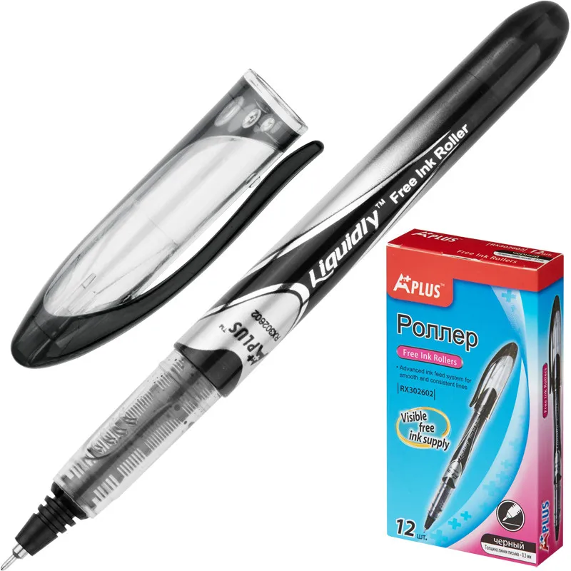 - Чернила роллера представляют собой водный раствор красящего вещества, что придает им сходство с чернилами перьевых ручек.