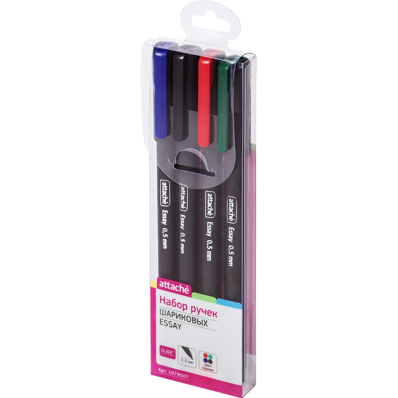 Набор шариковых ручек Attache Essay 0,5мм,масл,набор 4 цв.син+черн+зел+крас