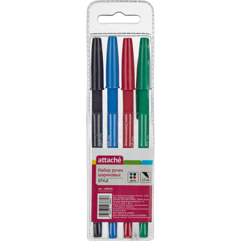 Набор шариковых ручек неавт. Attache Style 4цв/наб 0,5мм прорезин.корп