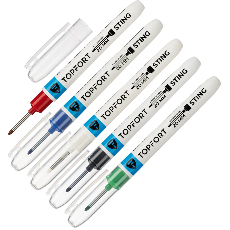 Набор маркеров строительных Topfort 1 мм с длинным наконечником 5 цв