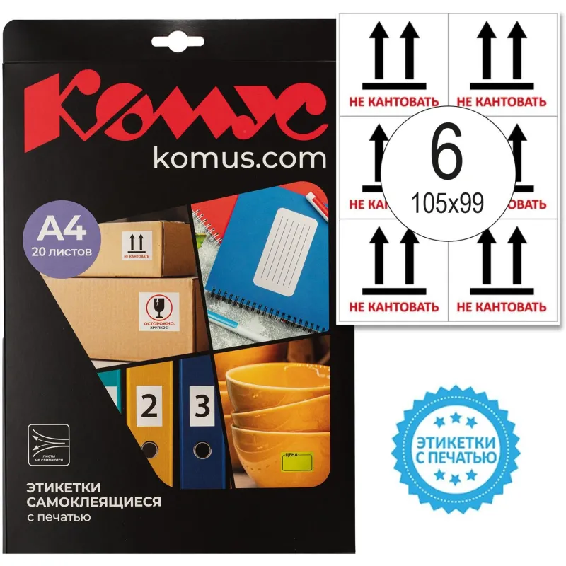 Этикетки самоклеящиеся Не кантовать105х99 6шт на А4,20л/уп