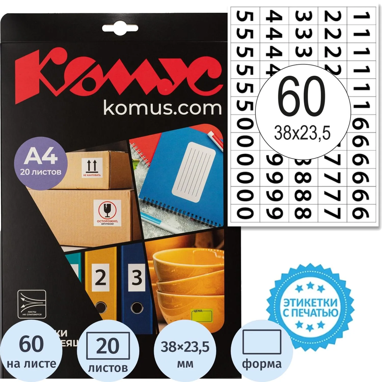 Этикетки самоклеящиеся Цифры 38х23,5 60шт на А4, 20л/уп