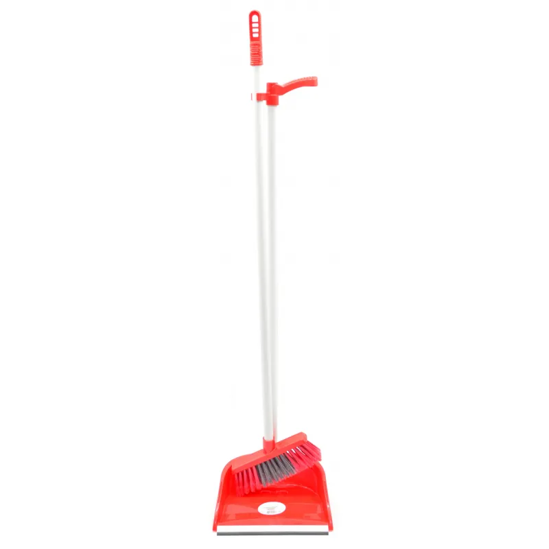 Комплект для уборки совок с щеткой для пола AF201-R, длинный ворс, красный