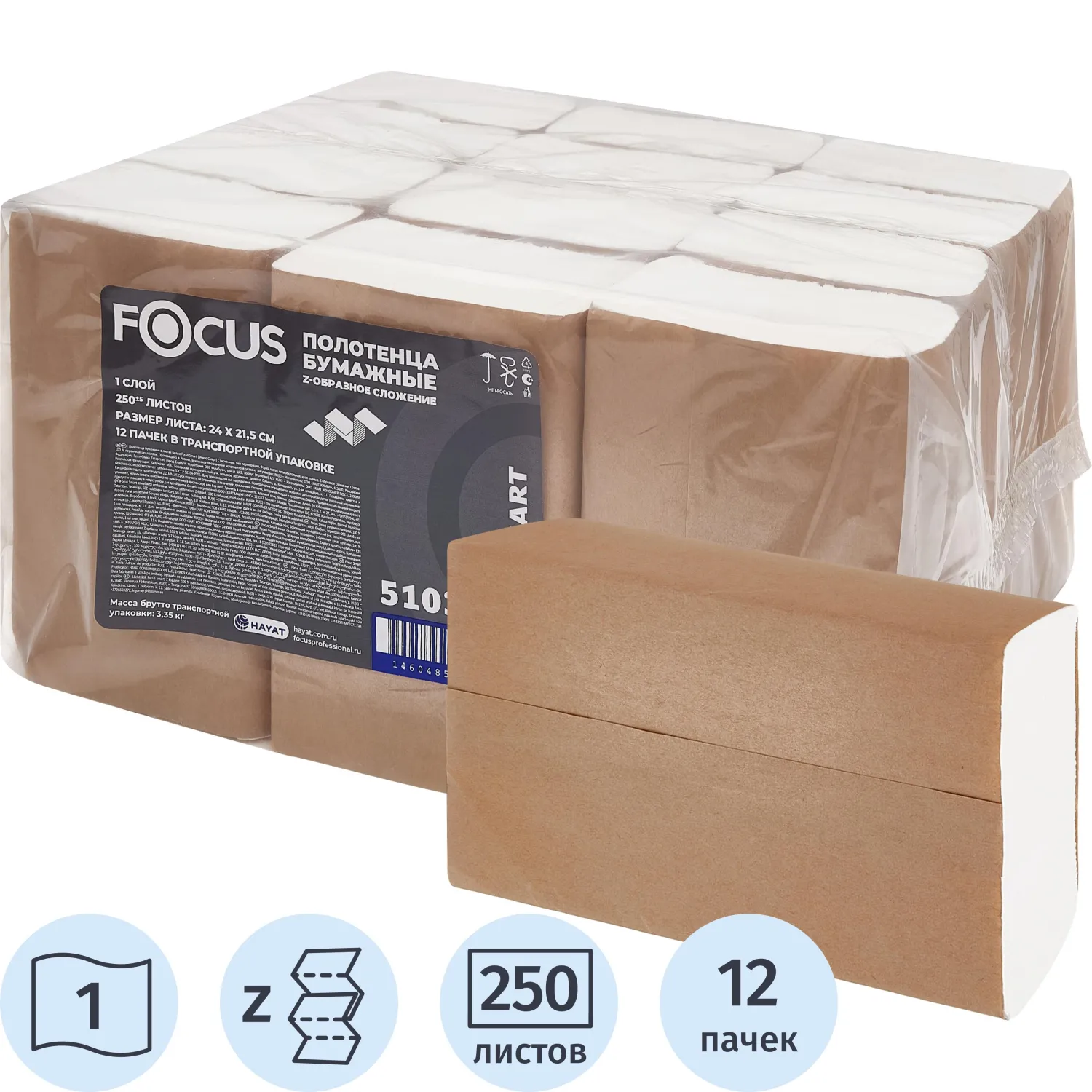Полотенца бумажные д/дисп. Focus SMART Z-сл 1сл 250л 12пач/уп_5103005