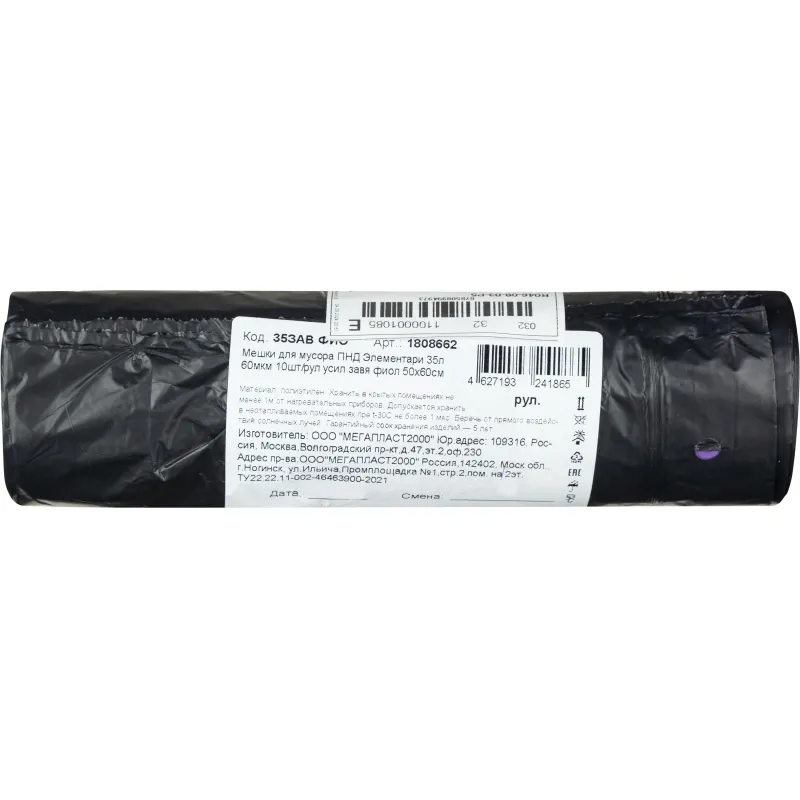 Мешки для мусора ПНД Элементари 35л 60мкм 10шт/рул усил завя фиол 50х60см