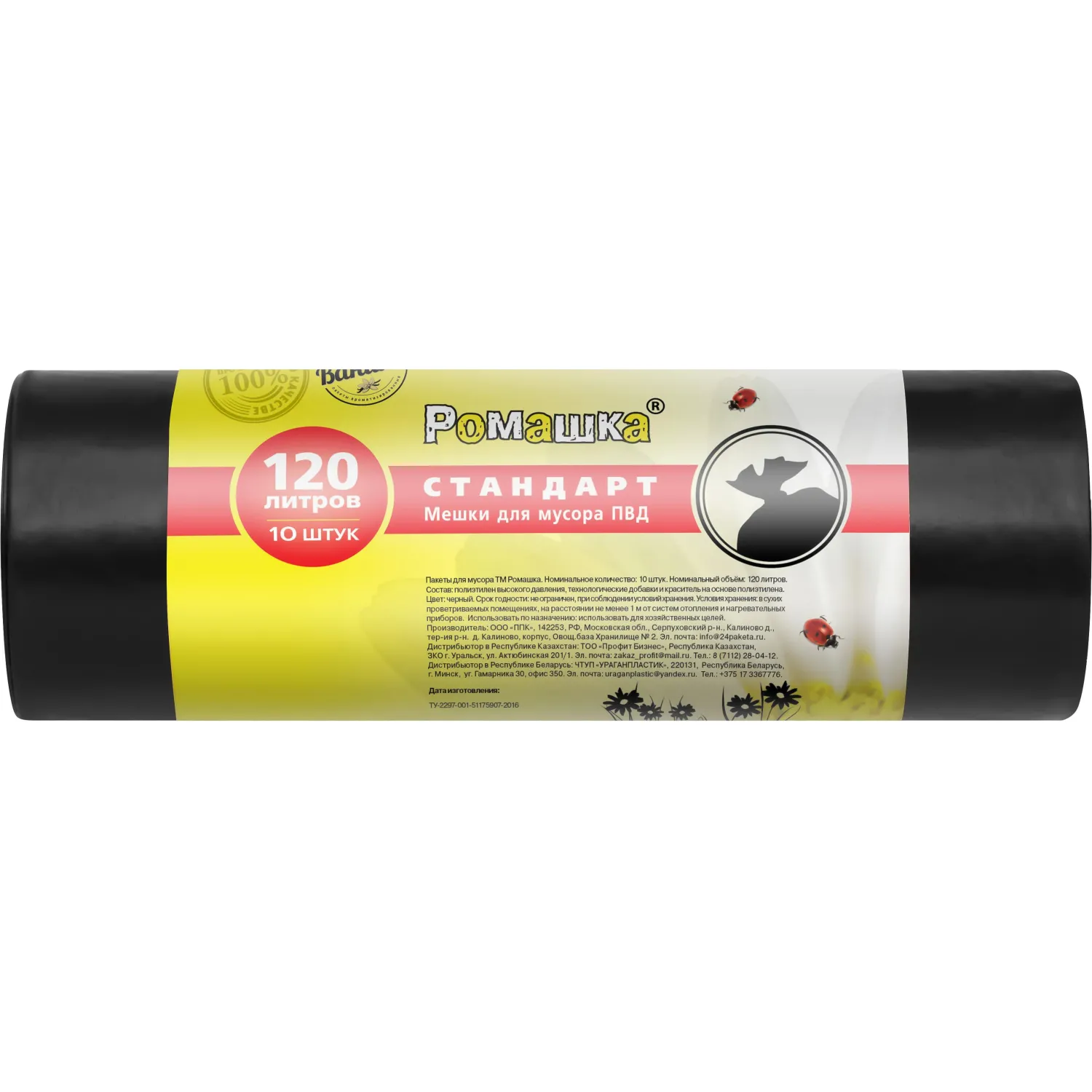 Мешки для мусора ПВД 120л 27мкм 10шт/рул черн 68х105см Стандарт